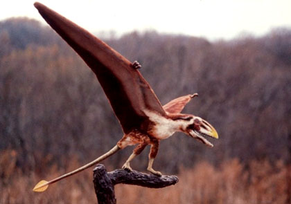 en modell av Diplocaulus, hans favorit bland de förhistoriska