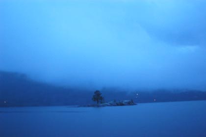 kompakta regnmoln och kraftiga vindar in över sjön som totalt