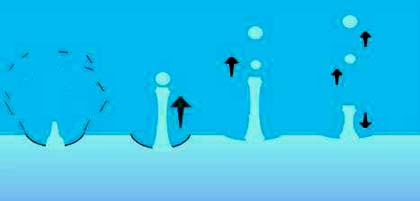 bubbelform som sedan rusar fram i ytan och spricker. Illustration:
