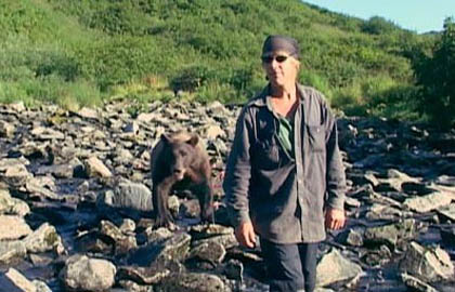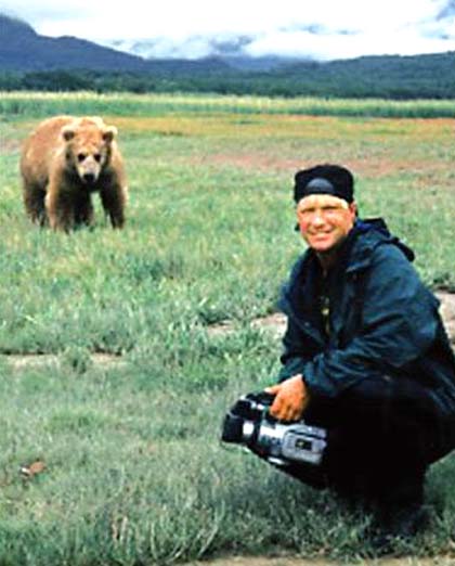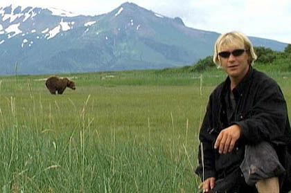 Timothy Treadwell tätt inpå dem. Foto: Amie