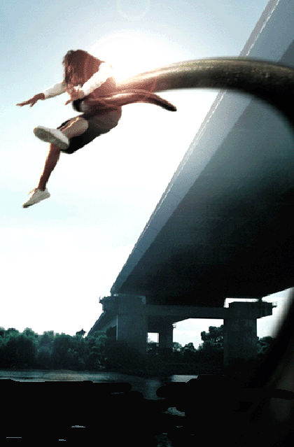 gymnastiskt svingar sig fram under broarna, när den graciöst