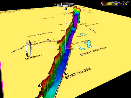 fram en karta som visade sjöns botten och sidor, vilken man sedan