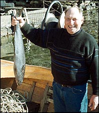 glad Odd Heimnes med sin unika fångst, Centrolophus niger, som
