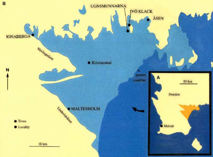hav. Fynden av mosasaurierna har gjorts på Ivö klack i