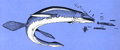 mosasaurierna. Dom jagade som krokodiler, som har ett gomsegel och tog