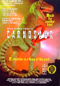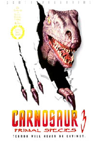 -1993: Jurassic ParkRegi: Steven Spielberg Skådespelare: Sam Neill, Laura Dern Jeff Goldblum, Richard Attenborough. Handling: Vid ett genrep i nöjesparken Jurassic Park kommer dinosaurierna lösa och fem vuxna och två barn får kämpa för livet för att ta sig därifrån. Spännande och mycket välgjort. Filmen fick tre Oscar. Speltid: 126 minuter. Betyg: ***** Kultstatus: Samlarvärde. (ABC) Format: VHS/DVD. Pris: 80-140 kr. Beställ från: Amazon.com -1993: CarnosaurRegi: Louis Morneau Skådespelare: Raphael Sbarge, Jennifer Runyon, Alfred E. Neuman Handling: Mindre nogräknade ägare på en kycklingfarm sysslar med förbjudna DNA-experiment och kläcker fram ett antal fruktade Velociraptors. Snart befinner sig alla på farmen i livsfara, då dinosaurierna löper amok. Fantastiska specialeffekter och ett oväntat uppdykande av MADs fader Alfred E. Neuman. Speltid: 83 minuter. Betyg: *** (C) Format: DVD. Pris: 85 kr. Beställ från: DVD Empire.com -1995: Carnosaur IIRegi: Louis Morneau Skådespelare: John Savage, mfl. Handling: Nya Velociraports har kläckts och den här gången har de tagit sig in i ett underjordiskt högrisklaboratorium. Där jagas de av en trupp kommandosoldater som inte sparar på krutet. Mycket i den här uppföljaren är plagierat ur filmerna om Alien, men det är hyfsat spännande och specialeffekterna är bra gjorda. Speltid: 83 minuter. Betyg: ** (C) Format: DVD. Pris: 85 kr. Beställ från: DVD Empire.com -1996: Carnosaur III