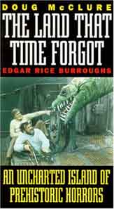 Time ForgotRegi: Kevin Connor Skådespelare: Bowan Tyler: Doug McClure, John McEnery, Lisa Clayton Susan Penhaligon Handling: Skeppsbrutna från ett handelsfartyg tar över en tysk naziubåt, hamnar ur kurs och kommer till en ö de kallar "Landet som tiden glömde". Här får de kämpa mot både dinosaurier och överlevande nazister. Filmen är spännande, full med action och bjuder på en rad fina specialeffekter. Speltid: 90 minuter. Betyg: *** Kultstatus: Samlarvärde. (C) Format: VHS. Pris: 70 kr. Beställ från: Amazon.com