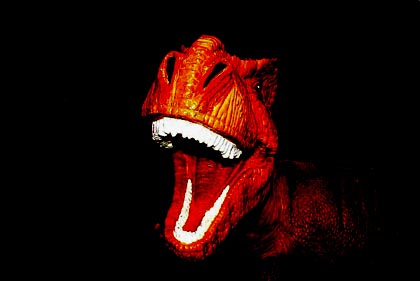 väldigt dinosaurieliknande litet huvud på en drygt 1,5 meter