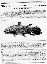 Hon skulle just gå sin väg när hon fick syn på en blå fena som stack upp under högen av mantor och hajar på fartygsdäcket. När hon grävt fram den visade det sig att, som hon senare skrev i sin dagbok, "det var den vackraste fisk jag någonsin sett, 1,5 meter lång och ljusblå till färgen med stänk av silver". Marjorie hade ingen aning om vilken art det var men något sa henne att det var viktigt att den kom till museet så fort som möjligt, och så blev det. Hon bläddrade igenom rader med referensböcker och fann till slut en bild av en fisk som fångsten stämde med, men det var en slutsats som verkade fullständigt omöjlig. Förhistoriskt exemplar Fisken liknade ett förhistoriskt exemplar, särskilt på huvudet och stjärtfenan. Hon gjorde en ganska grov skiss och skickade den, tillsammans med en kort beskrivning, till professor J.L.B. Smith, en 40-årig kemilärare vid Rhodesuniversitetet i Grahamstown, ca tio mil söder om East London i Sydafrika. Smith var emellertid bortrest under julhelgen och chefen för det lilla museet där Courtney arbetade var föga imponerad. Han avfärdade fisken som en - havstorsk! ![]() Courtenay-Latimers grovskiss av kvastfeningen Men den 3 januari 1939 hörde Smith av sig med ett nu världsberömt ilfax som löd: "DET ÄR VIKTIGT ATT SPARA - Stop - SKELETTET OCH GÄLARNA - Stop - PÅ DEN UPPHITTADE FISKEN". Ihärdigt sökande Fisken hade emellertid ruttnat upp och benen kastats av en städerska. Ett ihärdigt sökande i museets soptunnor gav inget resultat. Till och med de bilder som tagits av fisken hade på något sätt gått förlorade. Courtenay var förstås bedrövad men en optimistisk och glad Smith kom över och tröstade henne. Han föreslog att de skulle utfärda en belöning för fisken, som säkert kunde infångas på nytt. Han hade omedelbart identifierat fisken som en kvastfening och sa i ett uttalande, att han alltid vetat att det någonstans skulle dyka upp en primitiv fisk av det här slaget eftersom han i många år hört trålfiskarna prata om den ena märkliga fisken efter den andra. Århundradets upptäckt Fisken kallades snart "århundradets zoologiska upptäckt" och i medierna jämförde man fyndet med en livs levande dinosaurie. Utan några inre organ att studera var dock många frågor fortfarande obesvarade. Smith behövde till varje pris ett nytt och intakt exemplar. Han spekulerade i att fisken hade drivit ner norrifrån med Mozambique-strömmen och satte därför upp efterlysningsaffischer med en väl tilltagen belöning, längs hela den Östafrikanska kusten, så långt upp som till Kenya. Ett årtionde gick utan att någon hörde av sig. Medan Smith fortsatte att arbeta på sitt långtidsprojekt att katalogisera fiskarna i Indiska oceanen, glömde han inte att prata om kvastfeningen vart han än kom. Vetenskapliga kretsar Det var under den här perioden som myten om kvastfeningen som en djuphavsfisk började cirkulera i vetenskapliga kretsar. Europeiska expeditioner avlöste varandra och alla letade i de stora havsdjupen efter kvastfeningen. Men Smith själv var övertygad om att fiskens fysiologi och blåa färg bevisade att den höll till på grunt vatten och inte alls var någon djuphavsfisk. En dag gick kapten Eric Hunt, en brittisk äventyrare som seglade på Zanibar, Madagaskar och Komorerna, en liten ögrupp i Mozambique-kanalen som tillhör Frankrike, på ett av Smiths föredrag i Zanzibar. Hela övärlden Han fascinerades av vad han hörde om kvastfeningen och erbjöd sig att sätta upp affischerna med belöningen på Komorerna, som ligger halvvägs mellan Tanzania och Madagaskar. Smith tackade ja till erbjudanden och sedan myndigheterna också samtyckt, sattes affischer upp över hela övärlden. Den 21 december 1952, fjorton år efter upptäckten att kvastfeningen fortfarande lever, fick kapten Hunt, besök av två komorianer som medförde ett stort paket. En av dem. Ahamadi Abdallah, hade med handlina fångat vad infödingarna kallade en "mame" eller "Gombessa". Fiskaren var i sällskap med skolläraren Affane Mohamed, som läst affischen och sett den belöning för som Smith erbjöd. Enorm summa Hunt förskotterade pengarna och gav dem hundra pund, vilket var en enorm summa på den tiden. Då det inte fanns något annat sätt att bevara fisken på, saltade Hunt och hans besättningsmän ner den och seglade sedan till Dzaoudzi på ön Mayotte, som hade ett sjukhus och den kemiska vätskan formalin. Hunt var väl medveten om att de inre organen var lika viktiga som själva fisken och sedan han injicerat den med formalinet, telegraferade han efter Smith i Sydafrika. De franska myndigheterna i närbelägna Pamanzi var först inte säkra på att det verkligen handlade om kvastfeningen. För att försäkra sig om att de inte missade en viktig upptäckt, skickade de emellertid ett telegram till sina vetenskapsmän på Madagaskar. De fick inget svar. Ett iltelegram I det läget beslöt myndigheterna i Pamanzi att konfiskera fisken ifall Smith inte dök upp personligen och hämtade den. Hunt skickade ännu ett iltelegram till Smith, och uppmanade honom att snarast möjligt ta sig till Komorerna. För J. L. B. Smith var detta fynd, om det nu verkligen var en kvastfening, slutet på fjorton års intensivt sökande. Då han oroade sig för att Hunts exemplar kanske inte var vad han hoppades på, förhandlade han med premiärminister Malan i Sydafrika, om att gratis få flyga till Komorerna. Malan, som var julledig och inte befann sig i landet, tillstyrkte. Franska jaktplan Vid det här laget var Smith ett nervöst vrak och han blev inte gladare av att besättningen på den gamla DC3 Dakotan, som ställts till hans förfogande, fejkade ett radiosamtal i vilket det hette att franska jaktplan sklickats uppför att skjuta ner dem! Efter landningen på Komorerna gjorde Smith en snabb resa från flygplatsen till hamnen i Pamanzi, där Nduwaro låg förtöjd. Han grät av glädje när han upptäckte att det fakt