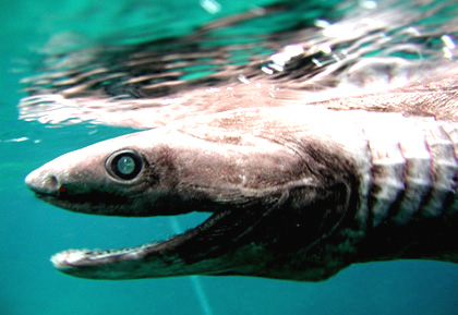 identifierar den som en haj. Vävnaden i gälarna sticker ut