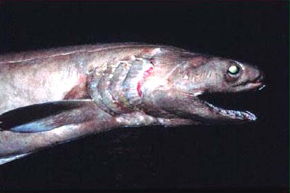 djup mellan 50 och 1 500 meter. Den lever på bläckfisk,
