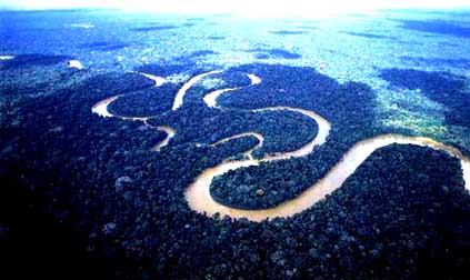 Amazonfloden slingrar sig som en orm genom Matto Grosso,