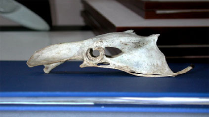Jag tror att skallen kommer ifrån det okända djuret, vilket