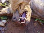 Hennes bror sköt djuret, band ett rep om det och drog fram det