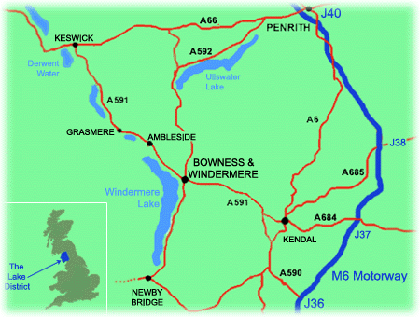som visar var i Storbritannien sjön Windermere ligger. Det handlar