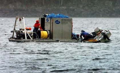 ton tungvatten från färjan DS Hydro, som sänktes av