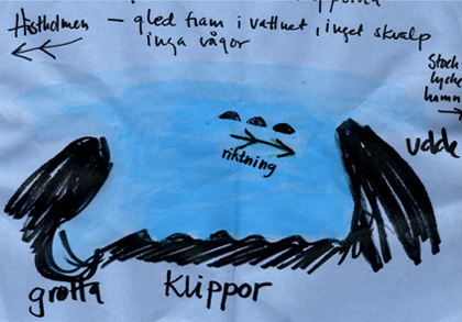vad de tolkade som ett djur i vattnet utanför Omberg. Det hade tre